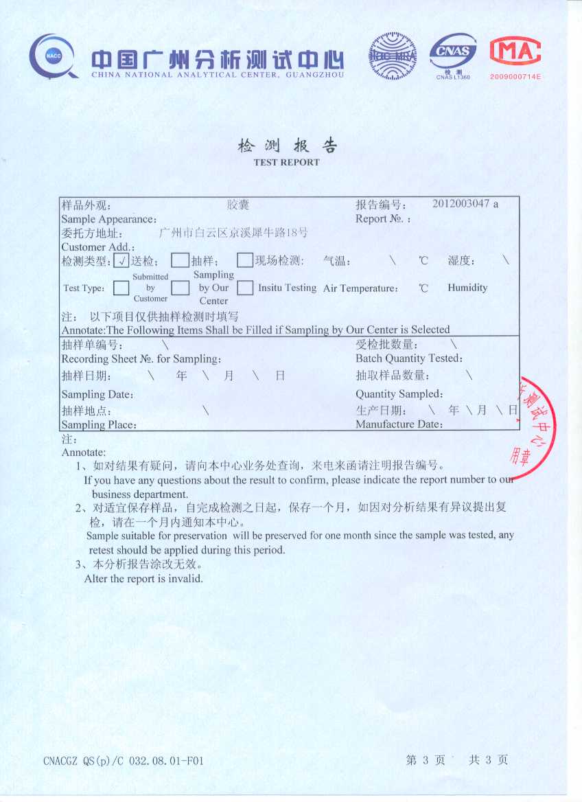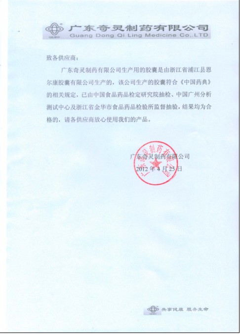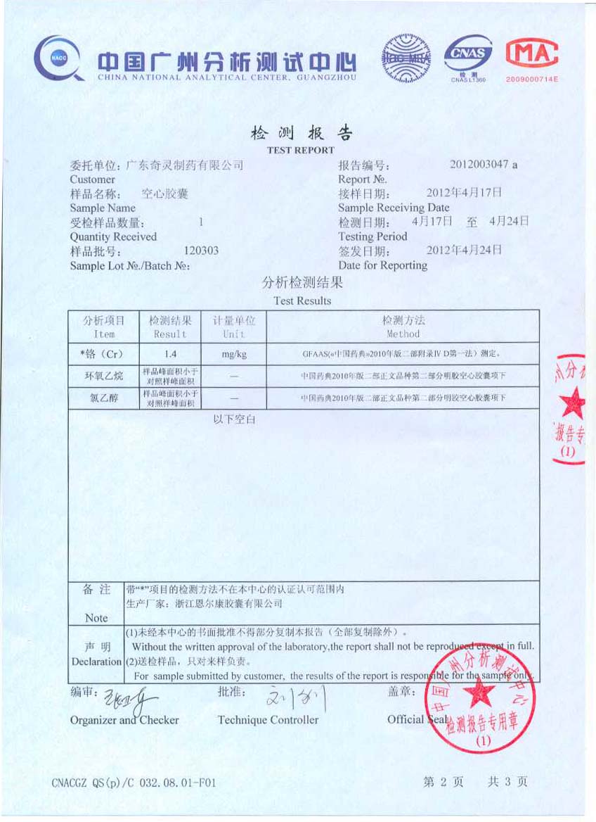2012年4月24日我公司空心膠囊分析檢測結果